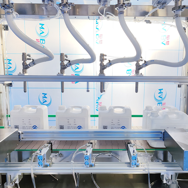 3、多頭設(shè)計(jì):多個(gè)灌裝頭可同時(shí)對(duì)多個(gè)容器進(jìn)行統(tǒng)一充填,提高了生產(chǎn)效率,液體智能灌裝設(shè)備的灌裝速度可通過參數(shù)進(jìn)行靈活調(diào)整。