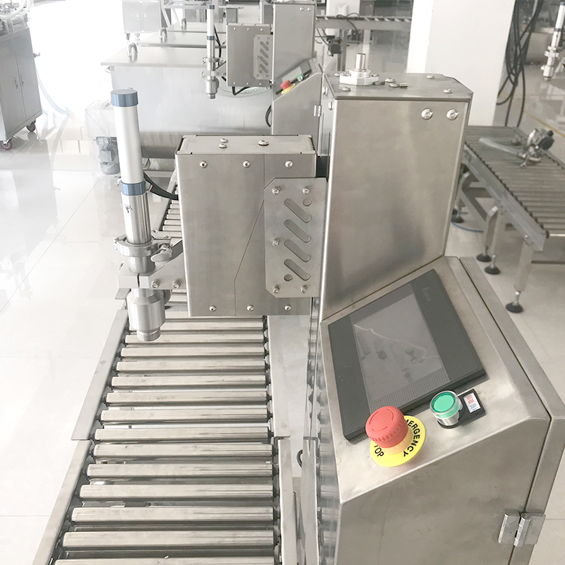 單頭定量灌裝設(shè)備是利用電子稱重定量的方式,能夠精確的控制好灌裝量的特性完成更多大容器的自動(dòng)化生產(chǎn)工作。電子稱重式灌裝機(jī)將電子重量信息與稱重控制儀通過數(shù)據(jù)線相連,在灌裝過程中,電子秤持續(xù)將壓力信號(hào)傳輸至控制儀表,電子稱重式灌裝機(jī)在檢測(cè)到容器內(nèi)的液體重量達(dá)到預(yù)先設(shè)定的參數(shù)時(shí),控制儀表會(huì)立刻發(fā)出工作指令,此時(shí)的單頭定量灌裝設(shè)備的灌裝閥門經(jīng)過控制停泵開關(guān)閉氣動(dòng)閥門,精準(zhǔn)完成一次灌裝操作,確保灌裝過程中不出現(xiàn)滴漏、生產(chǎn)量不精準(zhǔn)的操作。此外,電子稱重式灌裝機(jī)還擁有自動(dòng)去皮功能,不僅能夠自動(dòng)檢測(cè)并扣除容器的重量,并且會(huì)在顯示儀表當(dāng)中展現(xiàn)出液體的凈重,保持每桶容器的容量一致性輸出。