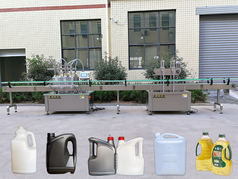 全自動油料灌裝機(jī)生產(chǎn)線是由:儲料罐、輸送管道、液體定量灌裝機(jī)械、稱重反饋、輸送機(jī)、控制器、壓蓋機(jī)等設(shè)備形成的加工流水線作業(yè)。
